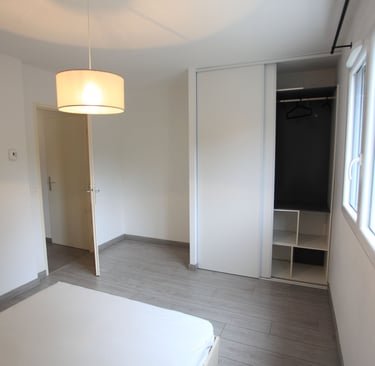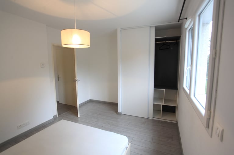 Une chambres de 13 m² avec placard.